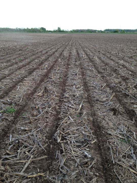 Seed bed with the rows of corn planted.