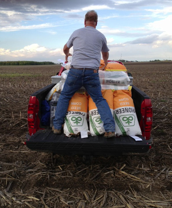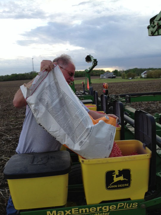 Richard’s getting the bags of seed down and ready to empty into the planter.