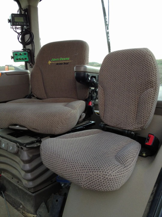 This is our “buddy seat” in the tractor. It’s so I or anyone else can ride along. When the kids were little they didn’t have these seats so we’d shove a junior sized bean bag on the side and let them ride there. At 3 years old Matt would fall asleep tucked into that seat and ride for a long time with Daddy.
