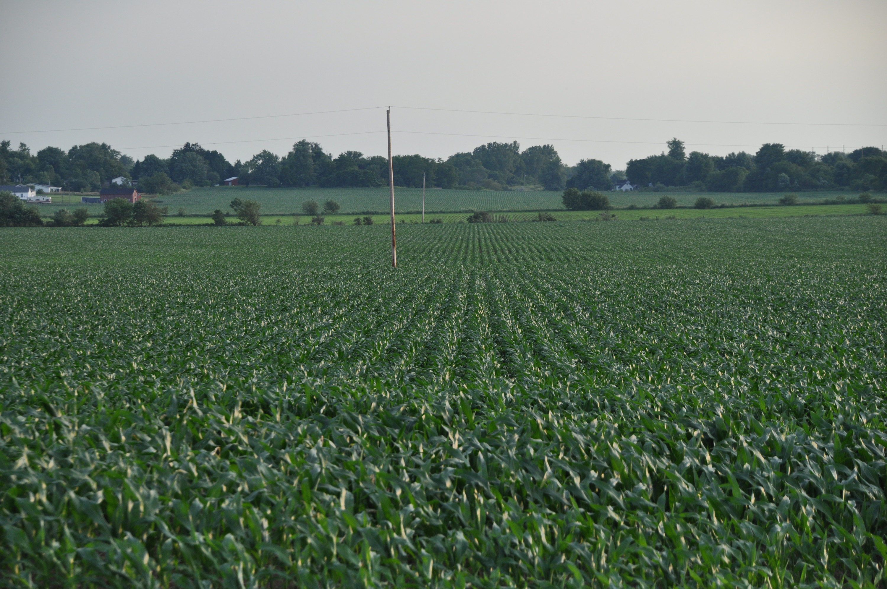 When the corn starts to use the nitrogen in the soil, it turns the deep, rich green you see this time of year. Nitrogen is a primary plant nutrient that helps the corn to yield well. You can read more here if you are interested in how it works.