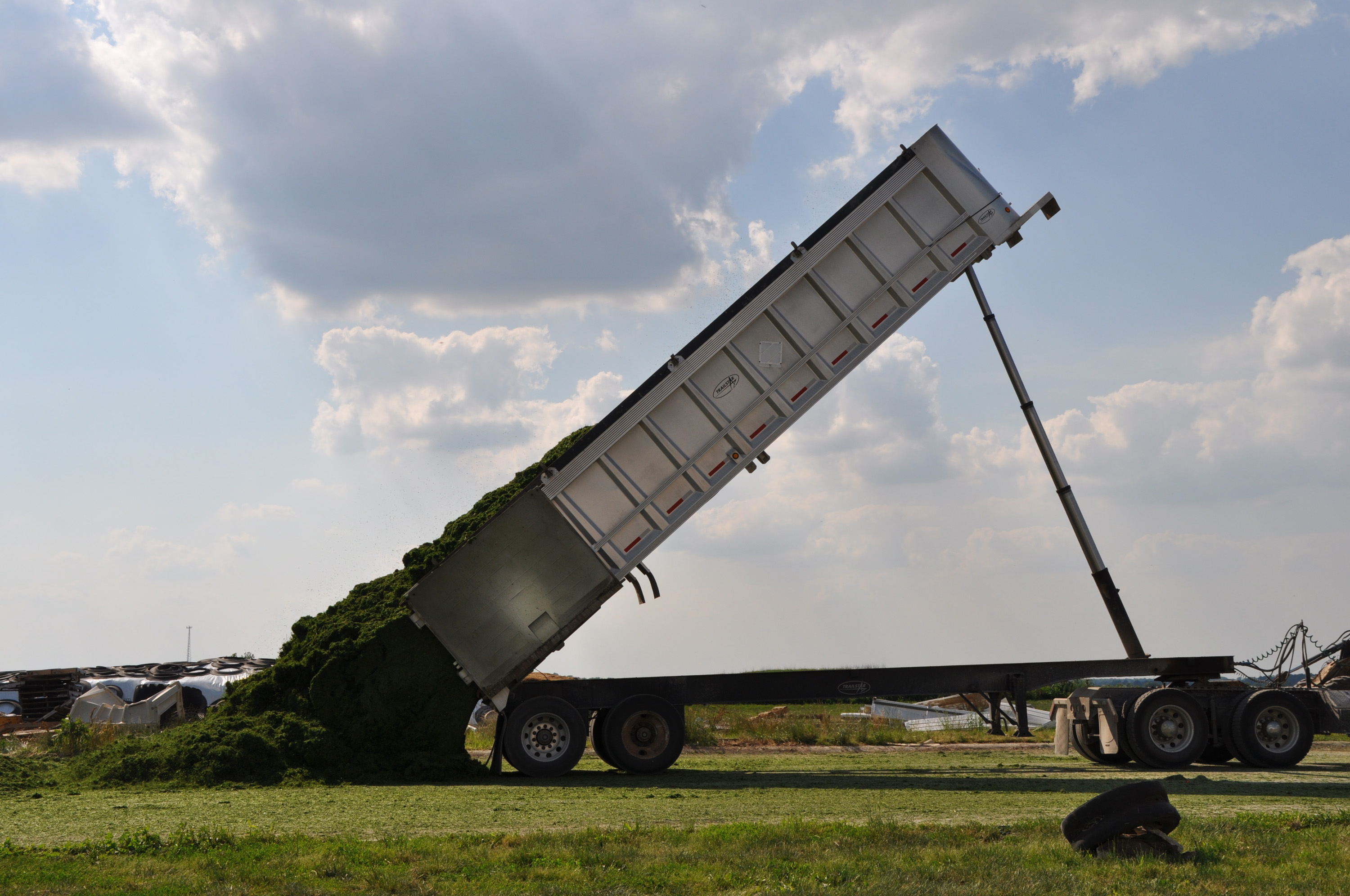 The semi you saw in the field now comes to unload at the pile.