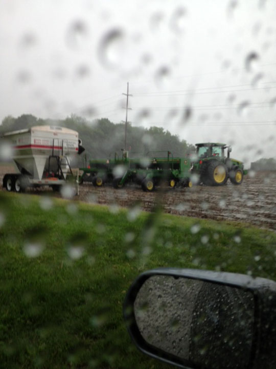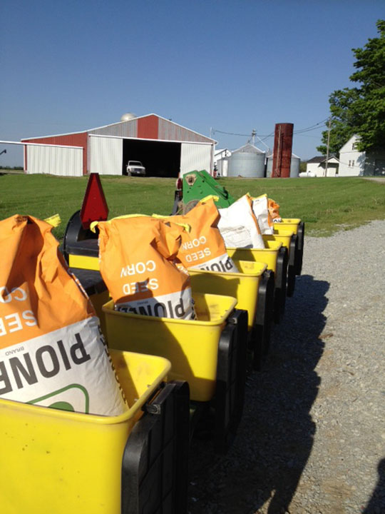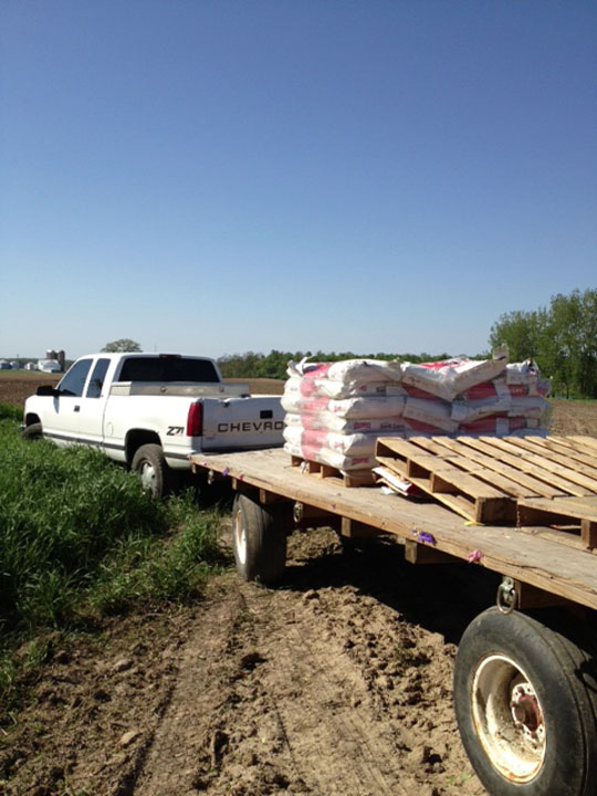 Instead of taking the seed wagon into town tonight, we just put extra bags of seed into the empty insecticide boxes. It’s an interesting sight going down the road!