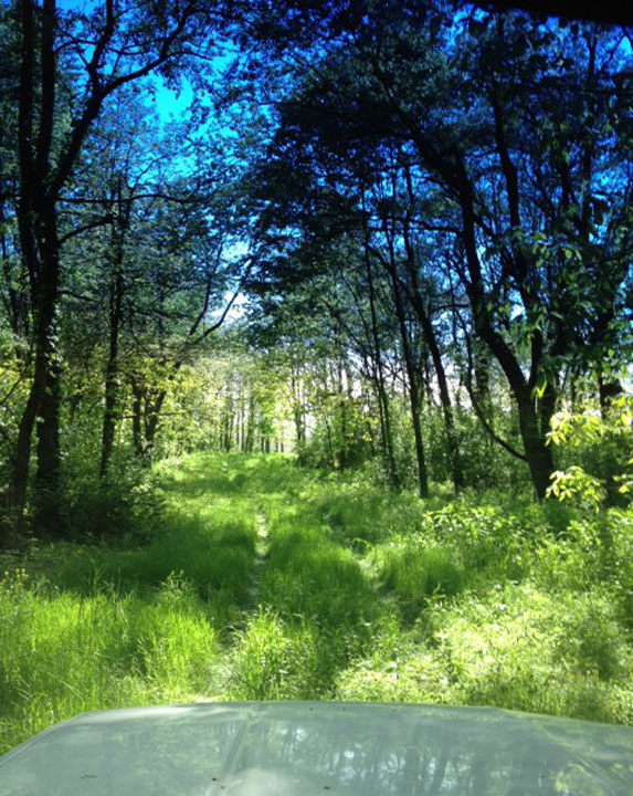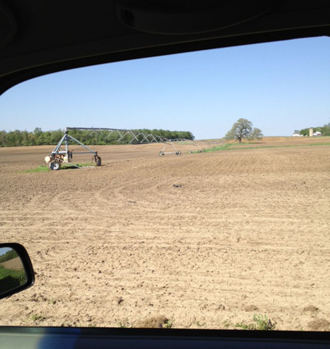 On the way to the woods I pass the dairy’s pivot irrigator on our land. They spray their storm water through it onto our fields.