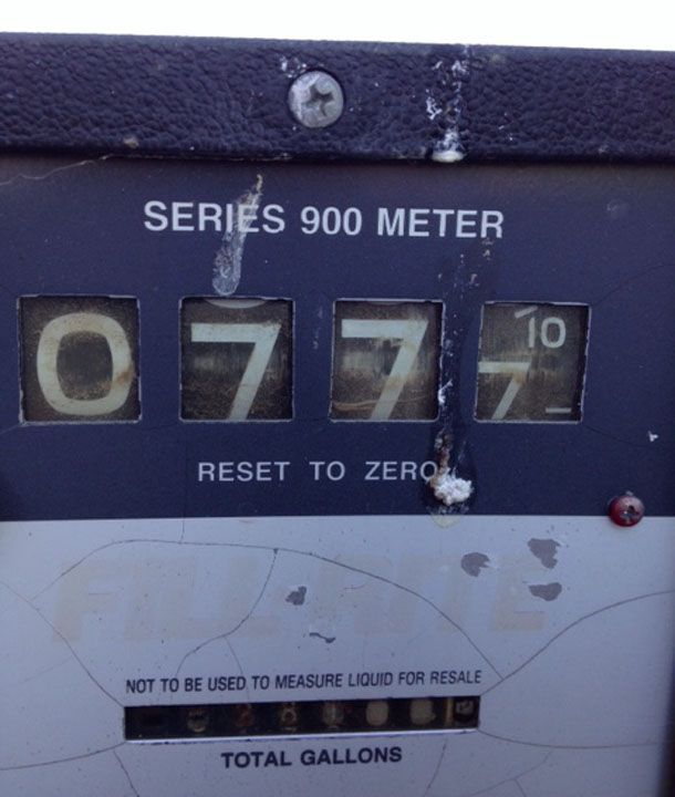 This is how many gallons we put in the tractor. You do the math on how much that costs! The tractor will hold 180 gallons total.