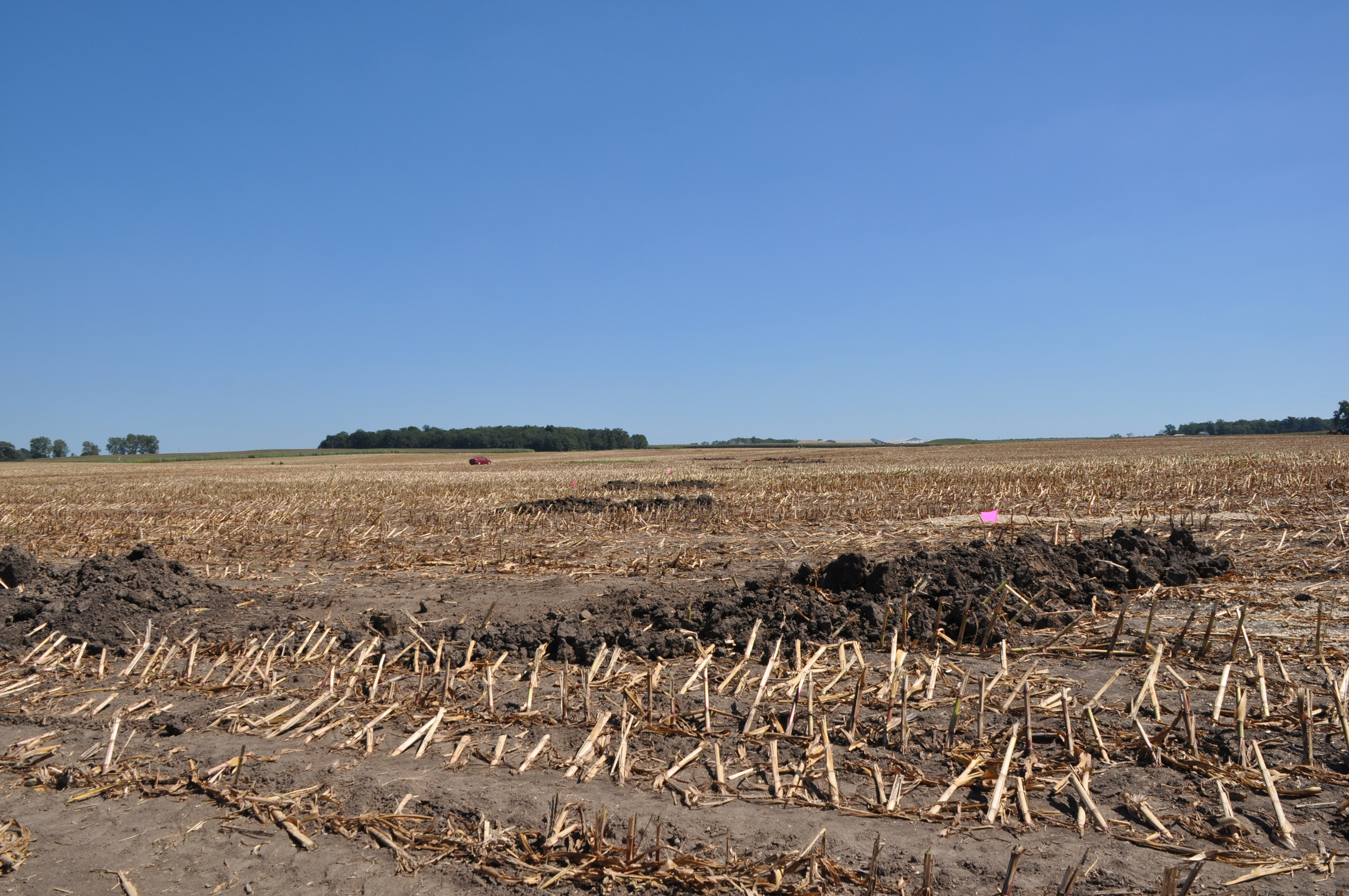The line of these dirt piles is where the crew found the old clay tile main. The piles go horizontal and the main would go straight out from where you are standing.