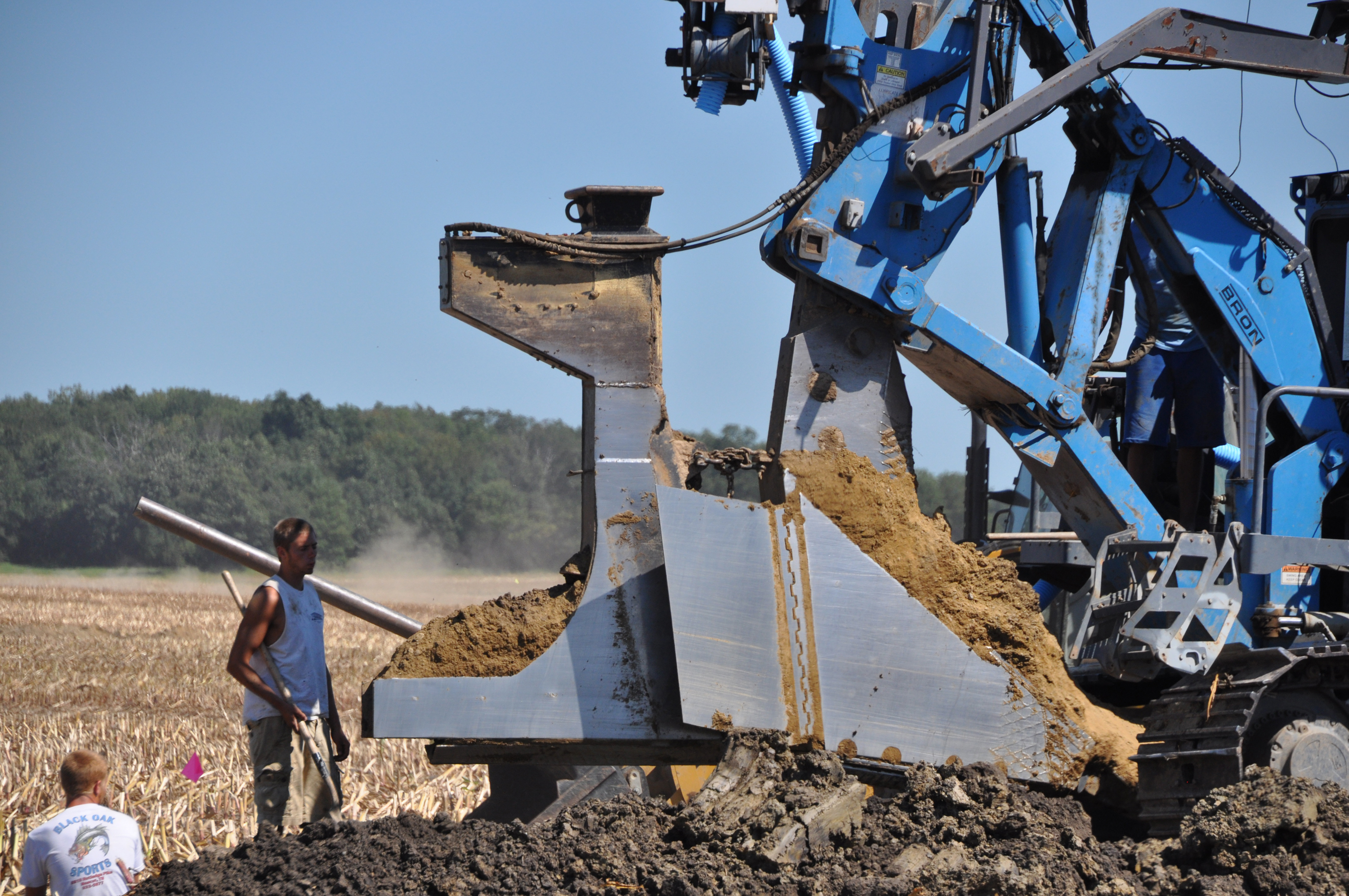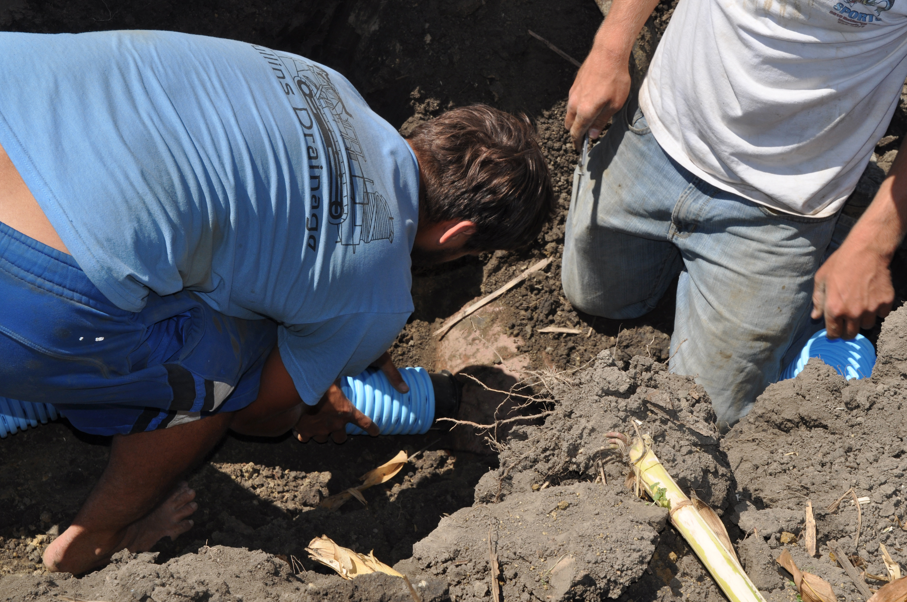 When the tiling crew first comes, they have to dig to find the old main lines so that they can attach new ones to them. Many of the old lines are made out of clay tile and are easy to break so they have to be very careful digging around.